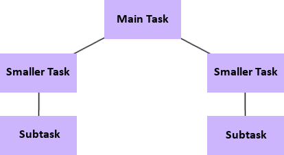 A hierarchy chart is a tool for representing the structure of a program, showing how the modules relate to each other to form the complete solution. The chart is depicted as an upside-down tree structure, with modules being broken down further into smaller modules until each module is only a few lines of code.